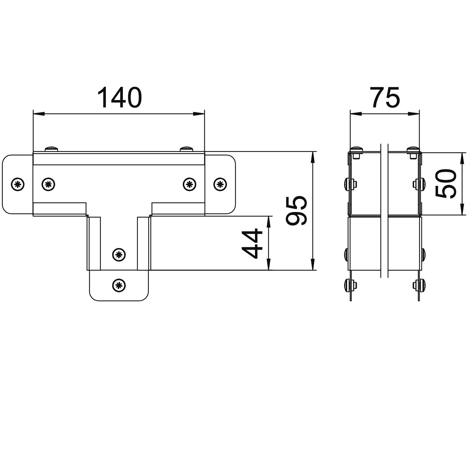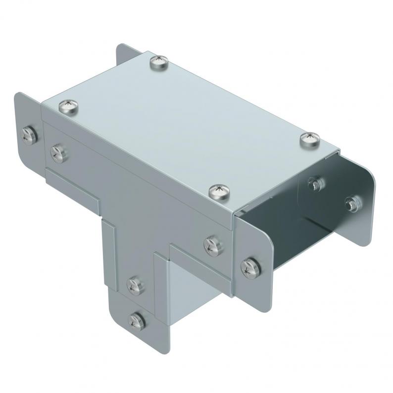 Single Compartment Tee External Cover, Non Gusset, Pre-Galvanised Steel to suit Cable Trunking 75mm x 50mm