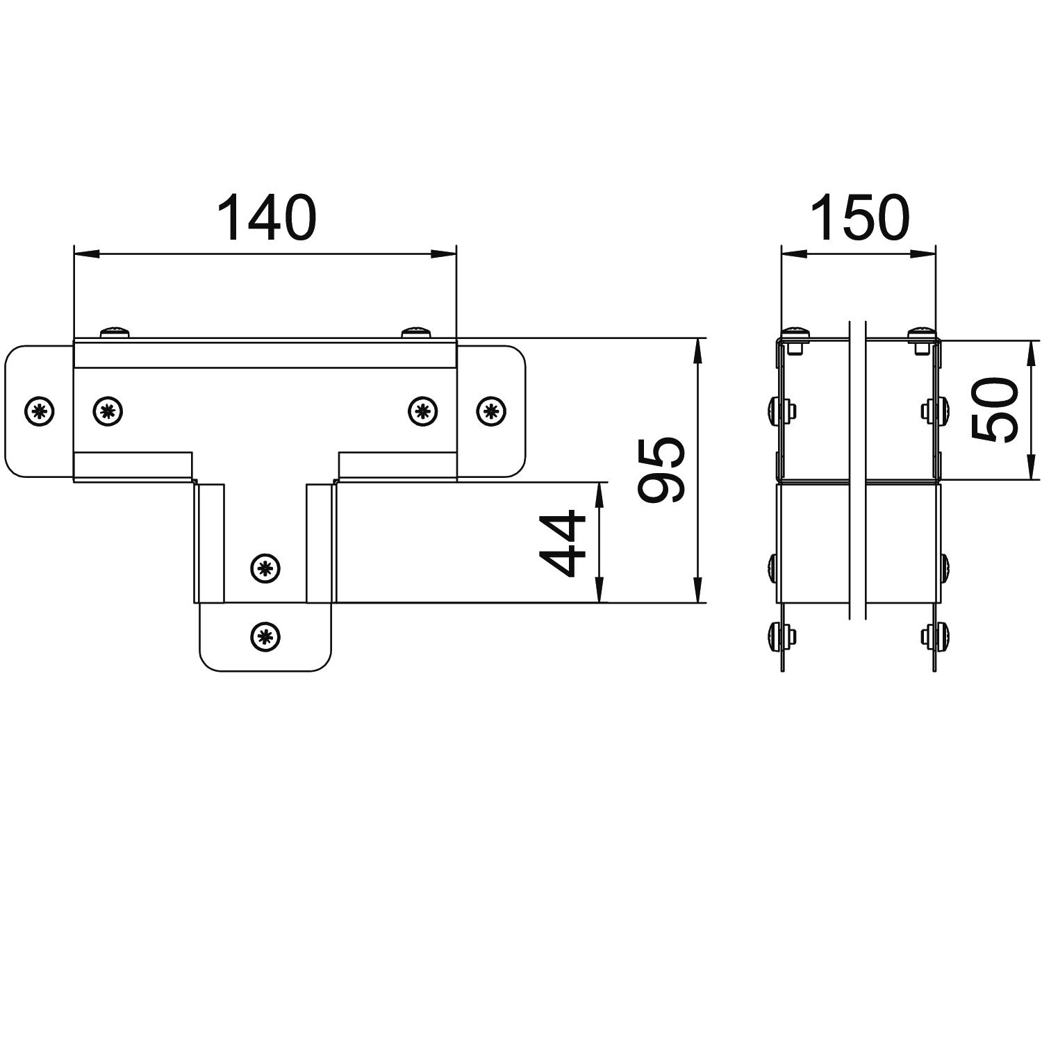 Single Compartment Tee External Cover, Non Gusset, Pre-Galvanised Steel to suit Cable Trunking 150mm x 50mm