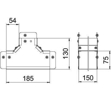 Single Compartment Tee Internal Cover, Pre-Galvanised Steel to suit Cable Trunking 150mm x 75mm