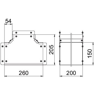 Single Compartment Tee Internal Cover, Pre-Galvanised Steel to suit Cable Trunking 200mm x 150mm