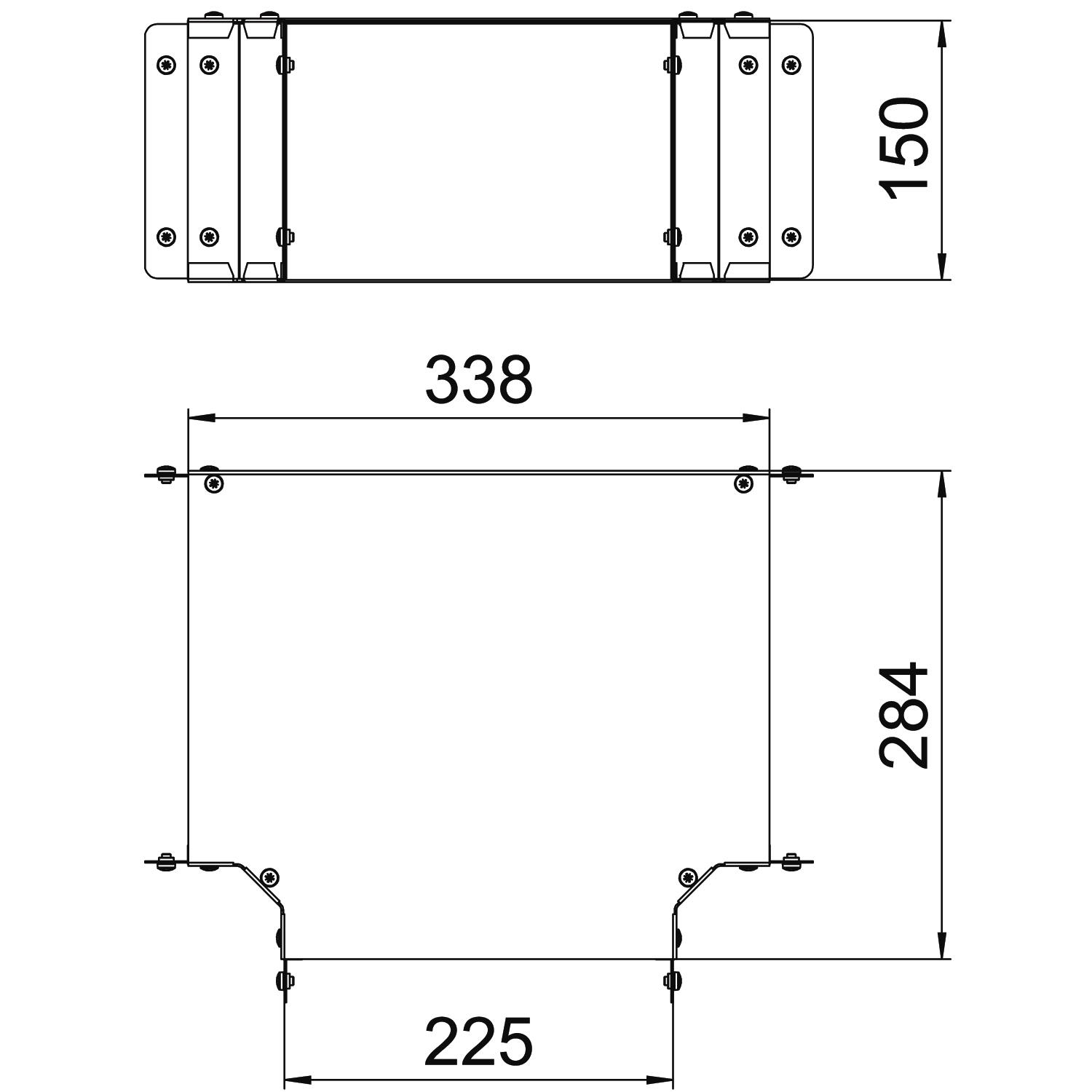 Single Compartment Tee Top Cover, Pre-Galvanised Steel to suit Cable Trunking 225mm x 150mm
