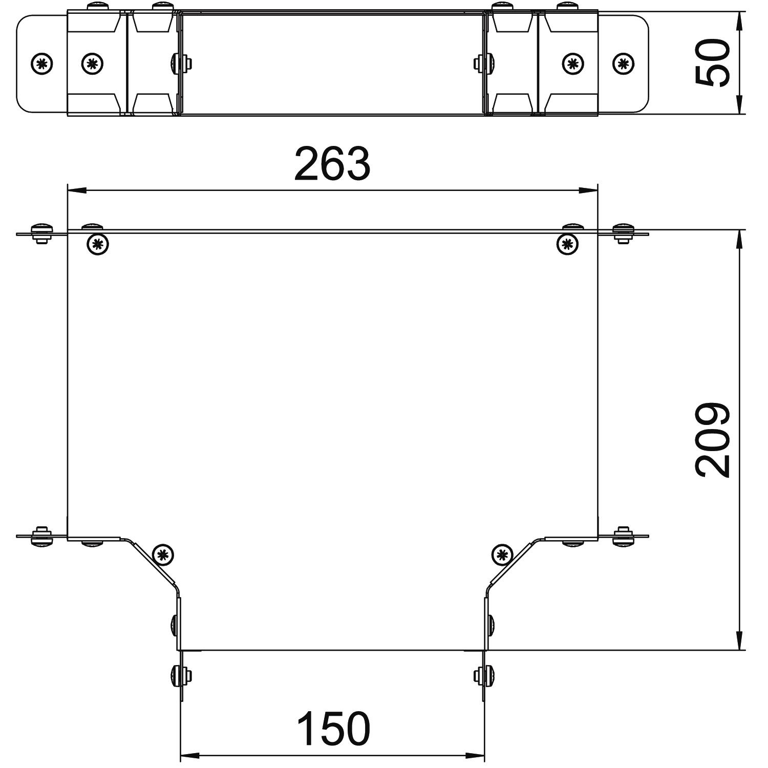 Single Compartment Tee Top Cover, Pre-Galvanised Steel to suit Cable Trunking 150mm x 50mm
