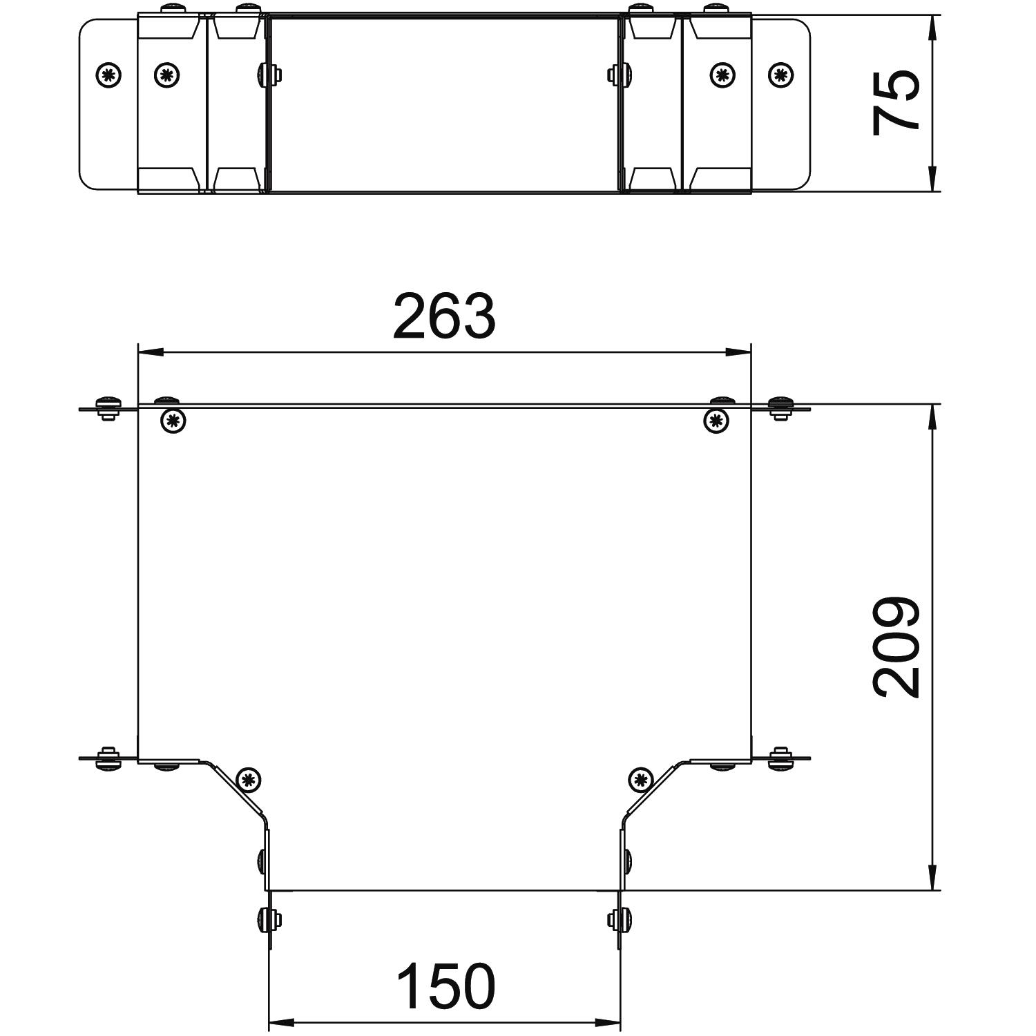 Single Compartment Tee Top Cover, Pre-Galvanised Steel to suit Cable Trunking 150mm x 75mm