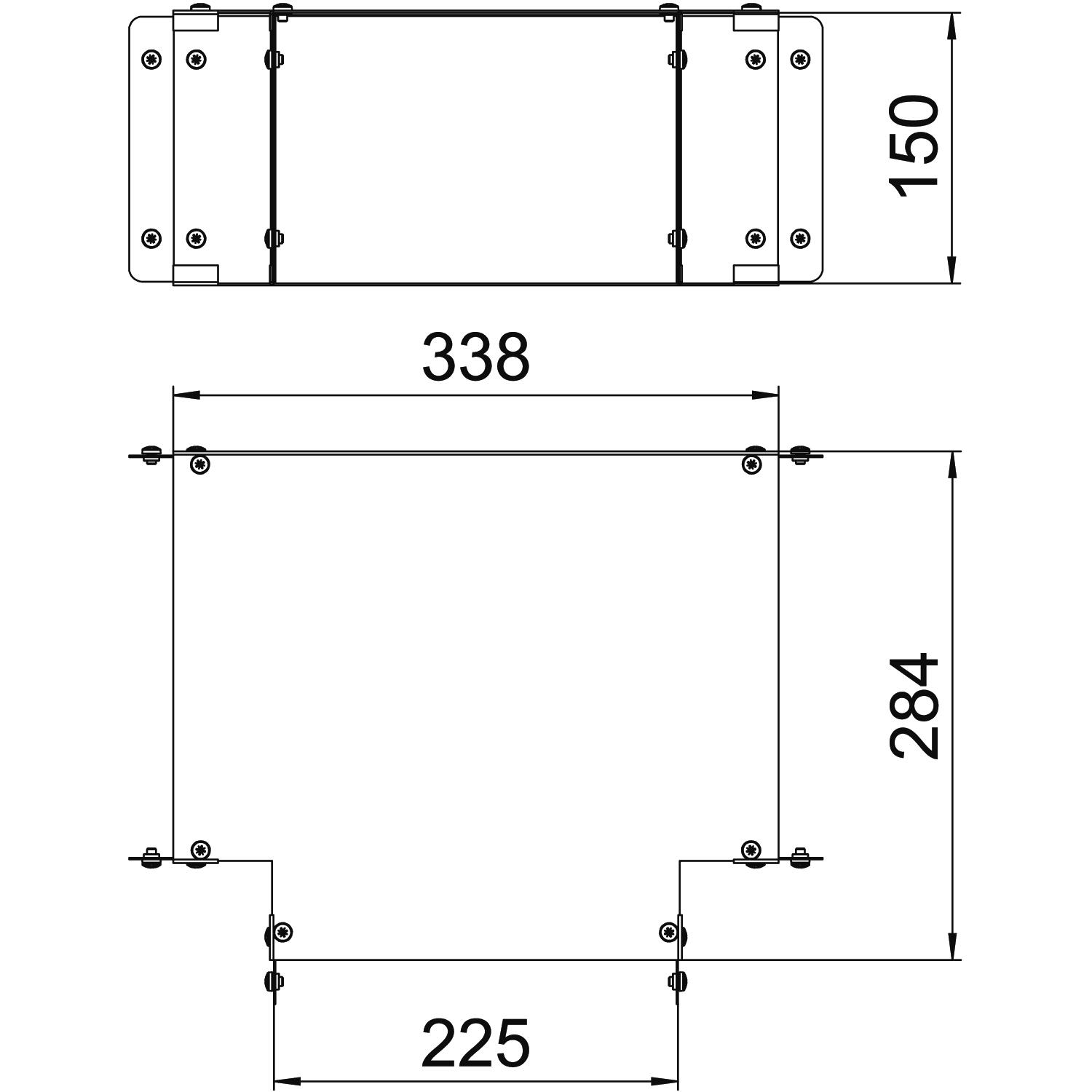 Single Compartment Tee Top Cover, Non Gusset, Pre-Galvanised Steel to suit Cable Trunking 225mm x 150mm