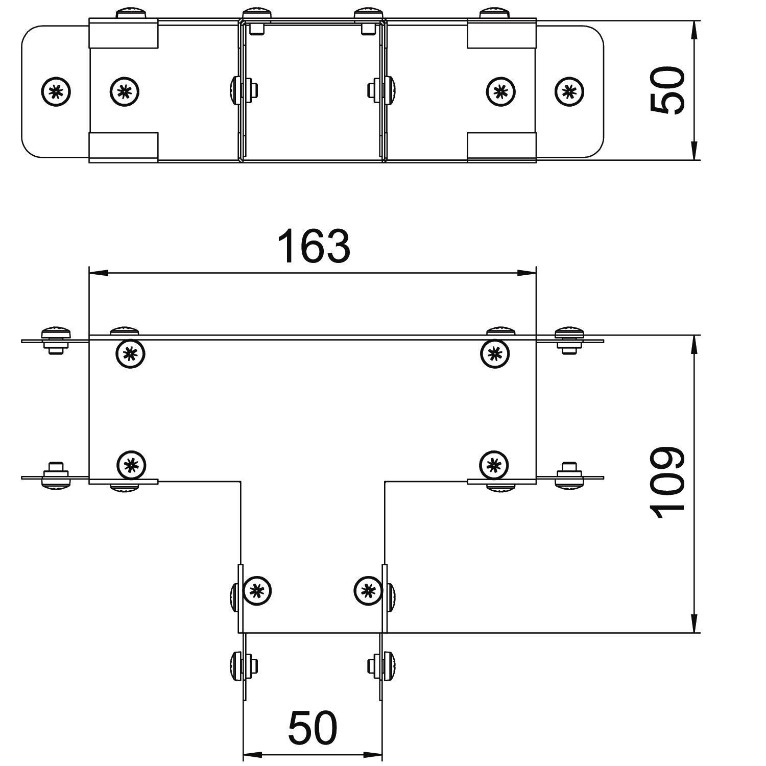 Single Compartment Tee Top Cover, Non Gusset, Pre-Galvanised Steel to suit Cable Trunking 50mm x 50mm