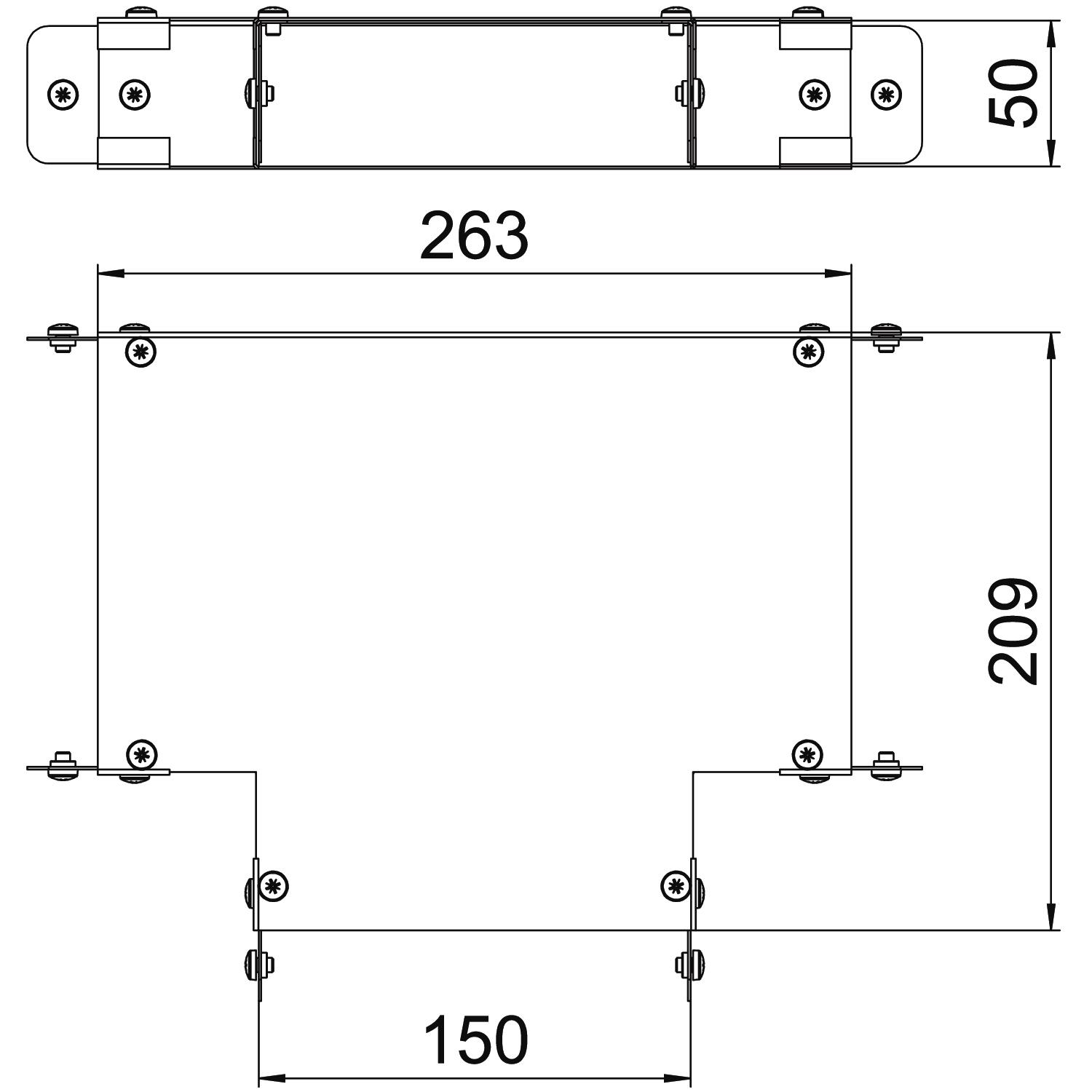 Single Compartment Tee Top Cover, Non Gusset, Pre-Galvanised Steel to suit Cable Trunking 150mm x 50mm