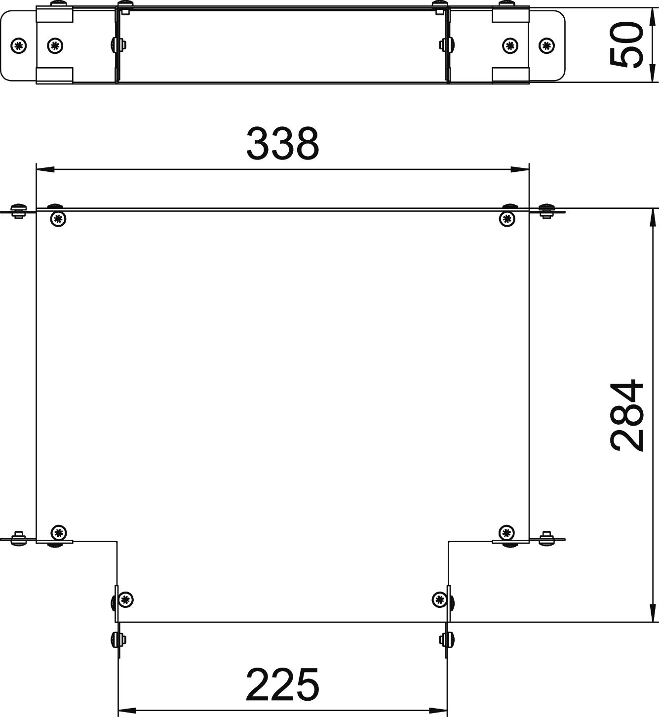 Single Compartment Tee Top Cover, Non Gusset, Pre-Galvanised Steel to suit Cable Trunking 225mm x 50mm