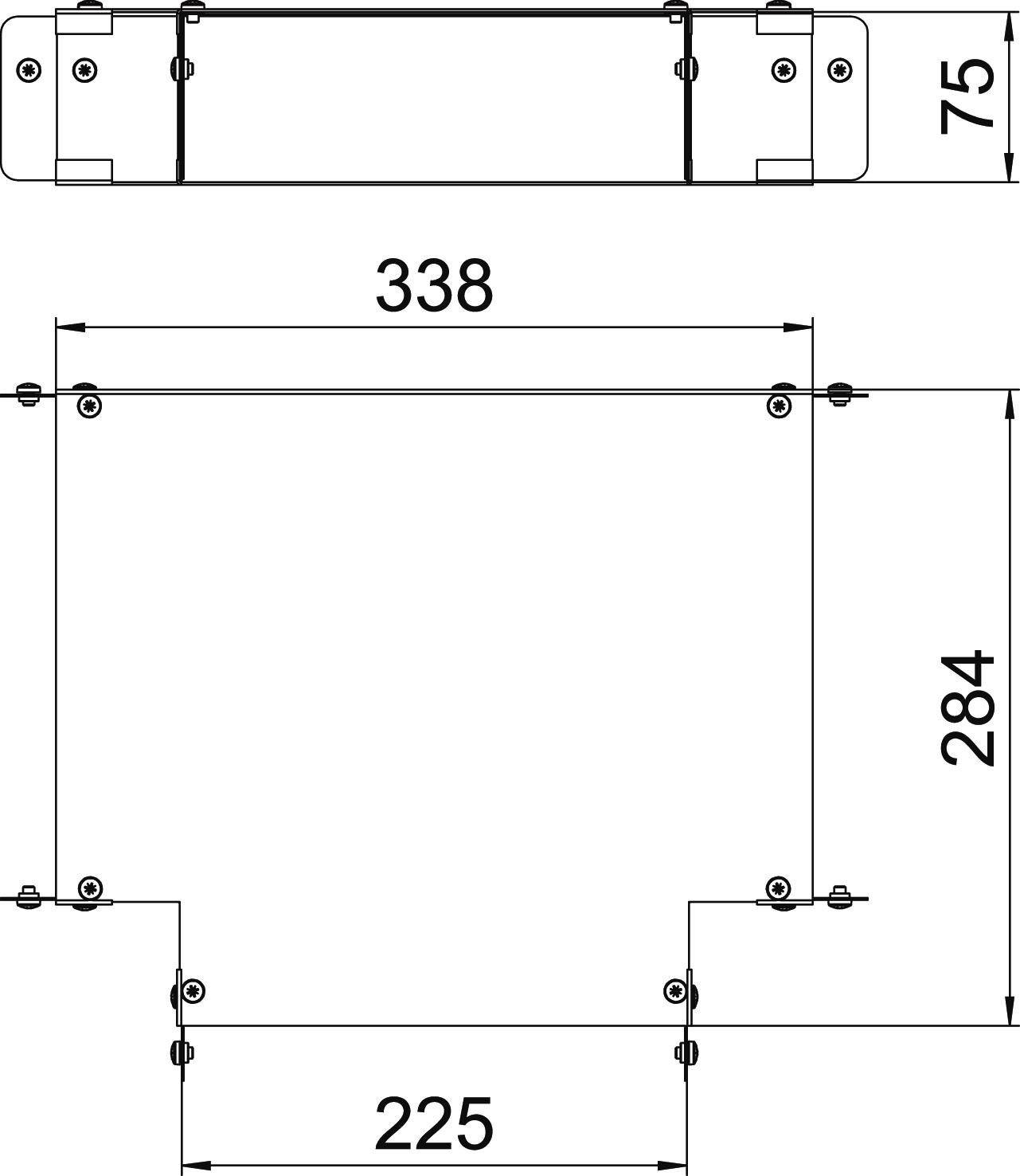 Single Compartment Tee Top Cover, Non Gusset, Pre-Galvanised Steel to suit Cable Trunking 225mm x 75mm