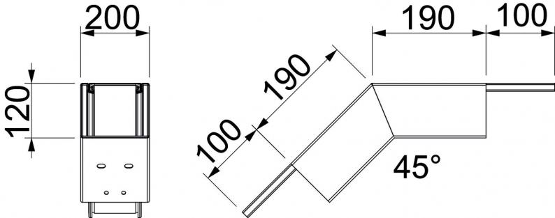 Vertical bend, falling, duct height 120 mm, FS
