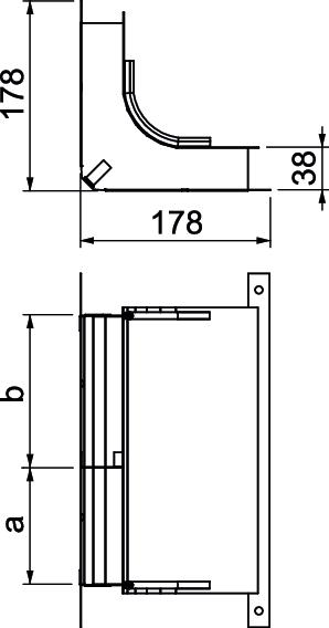 Vertical bend, two-compartment, for vertical direction changes of screed-covered underfloor ducts (wall connections, supplies).